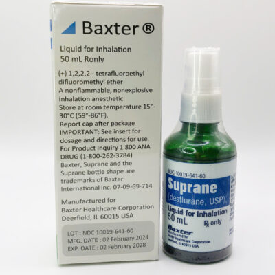 - Tá dược: Mỗi lọ thuốc Suprane – Baxter chứa 50 ml desfluran 100%.