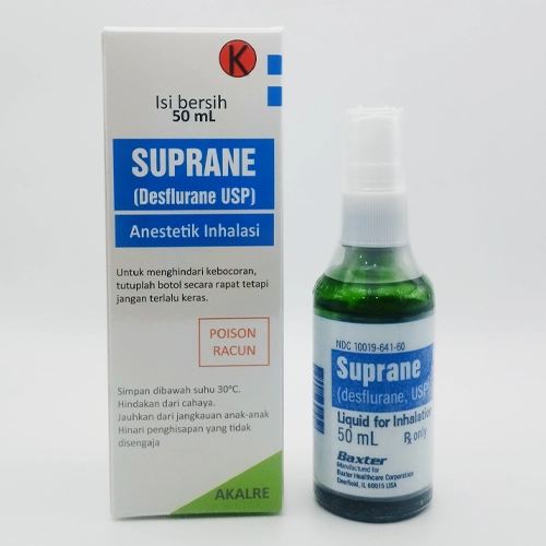 - Tá dược: Mỗi lọ thuốc Suprane – Baxter chứa 50 ml desfluran 100%.